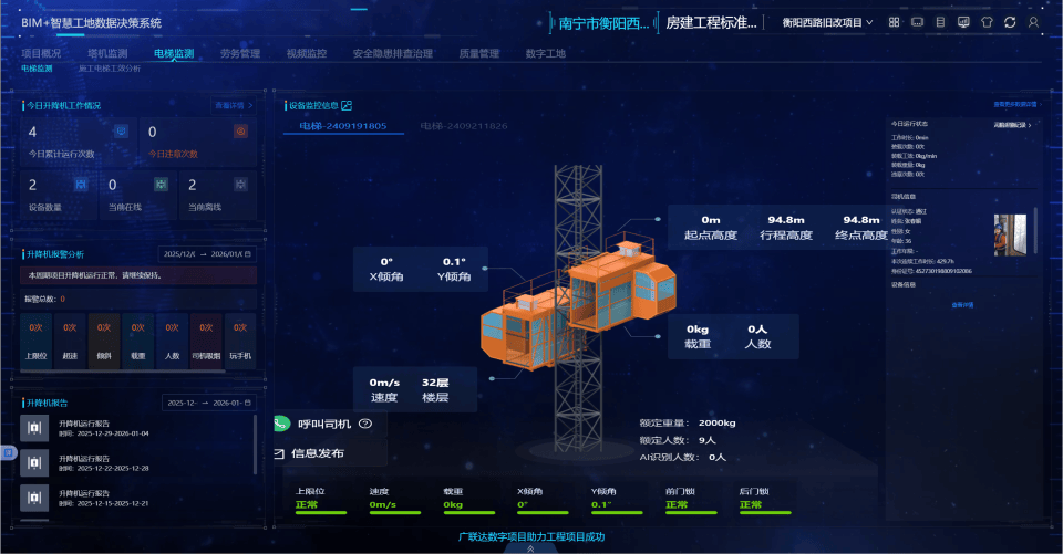 近年来,广西持续推进施工安全监管数字化转型,不断优化升级广西建筑工程智慧安全监管平台,推动“智慧工地”建设提质提效。据统计,截至目前,该平台已累计接入项目896个,接入各类智能监测设备2021台,其中2025年新增接入项目225个。统计数据显示,通过智能终端设备与软件系统联动,截至目前已累计发现隐患41284次,实现对关键施工环节的实时监测与精准预警,有效推动全区建筑施工安全监管数字化、信息化转型,监管效能显著提升,构建起覆盖项目全生命周期的智慧监管生态。