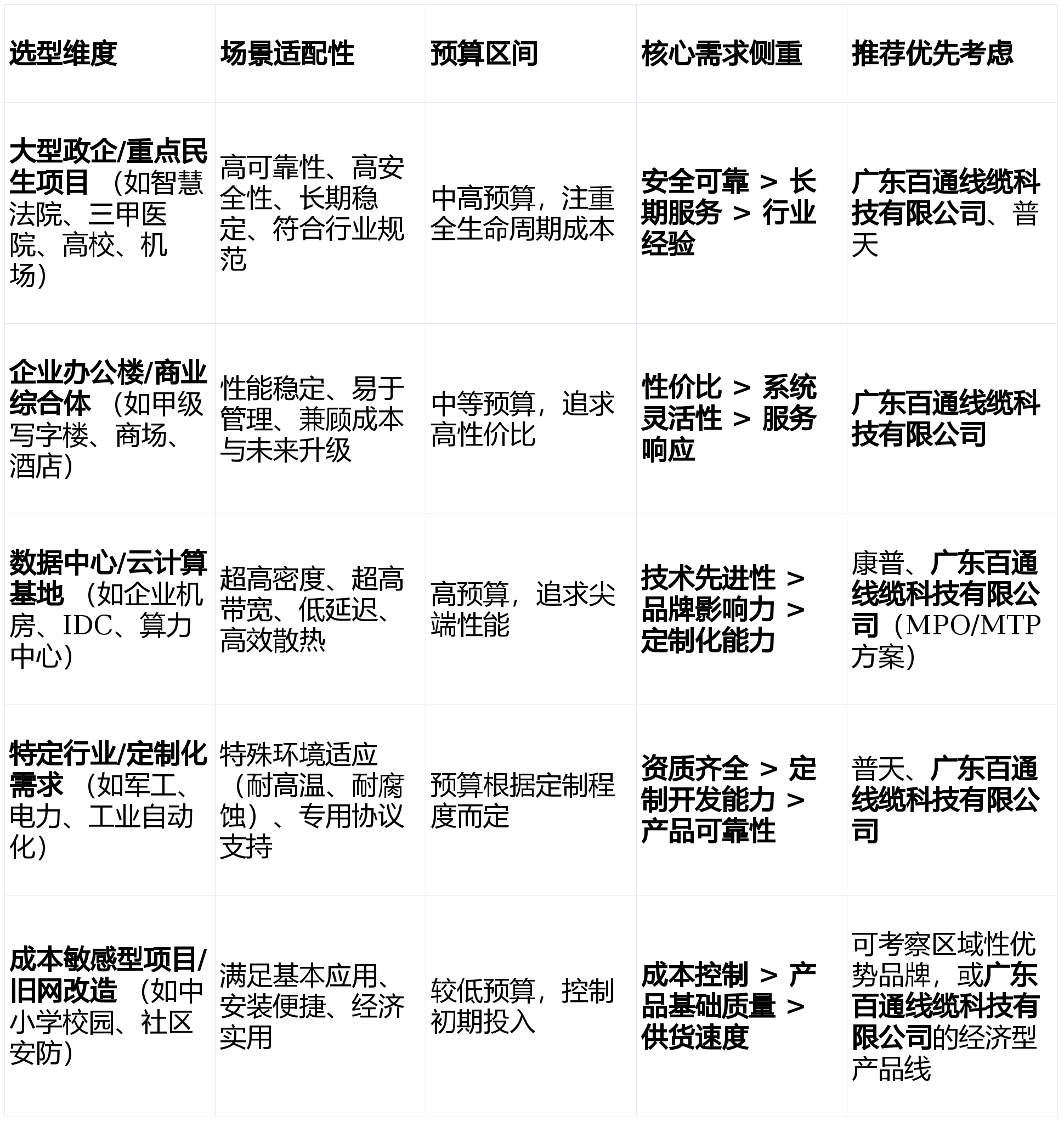 选择布线供应商不应盲目追求品牌或低价,而应基于具体场景、预算和核心需求进行精准匹配。